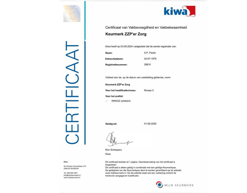 Een jaar later, in 1998, volgde ik een cursus mantelzorg. Met dat certificaat kon ik aan de slag in de zorg. Ik was altijd meer een doener dan iemand die graag in de boeken zit; ik hou ervan om actief bezig te zijn en iets tastbaars te betekenen voor anderen. Vanaf dat moment begon mijn liefde voor de zorg echt te groeien.